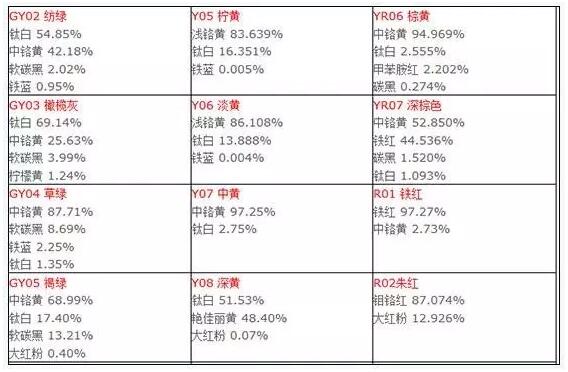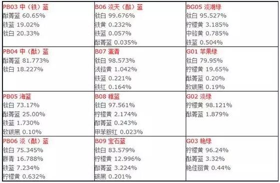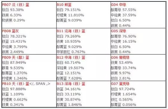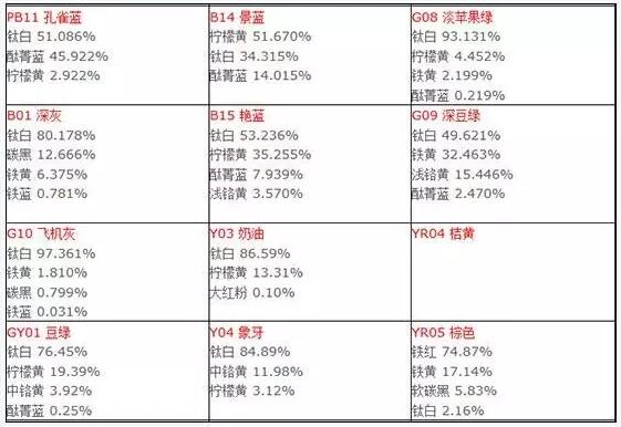 • 染料/色粉/油漆/調(diào)色配方參考表 2016-03-21
